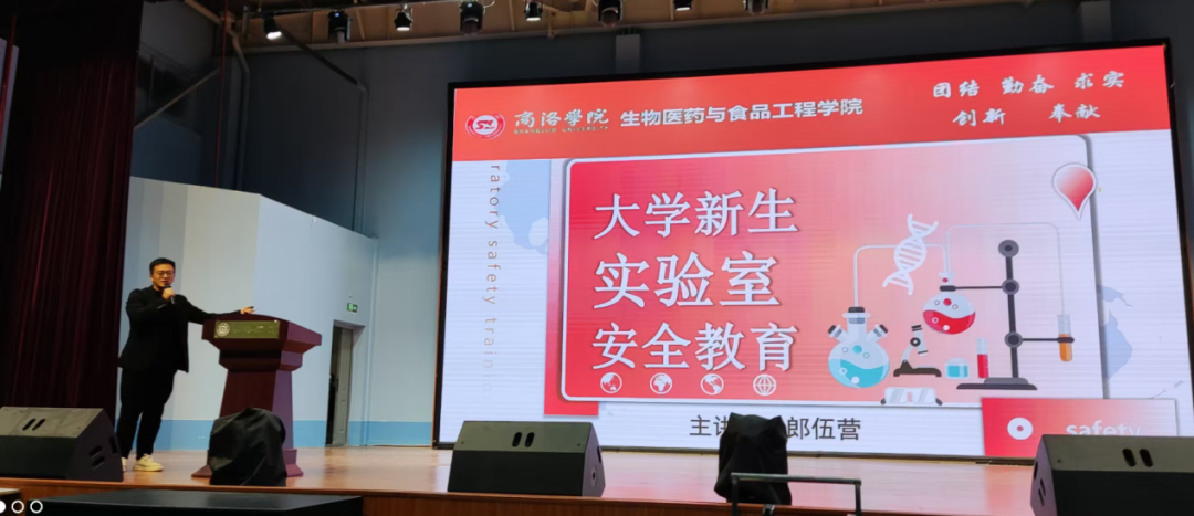 公司实验中心主任郎伍营博士为新生上“实验室安全教育”大课,引导新生树牢安全意识,认真学习、严格遵守实验室安全管理制度。