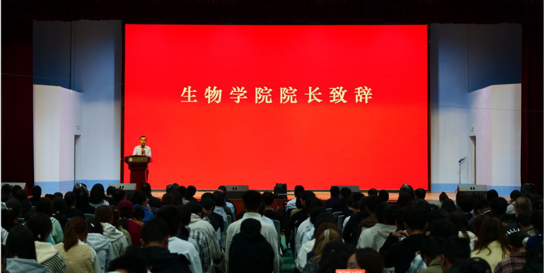 经理赵永平致辞,代表全院对2025级新同学表示热烈欢迎。他从公司发展历程、学科优势、科研平台及人才培养成果等方面进行介绍,并以“探索生命科学奥秘”为主题寄语新生:“希望同学们永葆对生命科学的好奇心,既专注基础研究,也勇于跨界融合,在微观世界中发现宏观价值,成为兼具创新精神与社会责任的生物学子。”