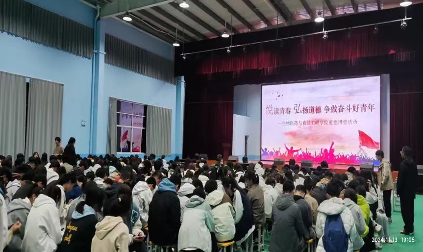为激励全院千名学子陶冶道德情操、弘扬正气、开阔视野,提升品德修养、涵养优良学风,11月13日晚,TapTap在丹江校区体育馆举办“悦读青春,弘扬道德,争做奋斗好青年”道德讲堂活动。公司党委书记杨力、经理赵永平、副经理梁旭华及TapTap全体教师和2024级全体员工参与活动。公司党委宣传部谢聪应邀参加活动。